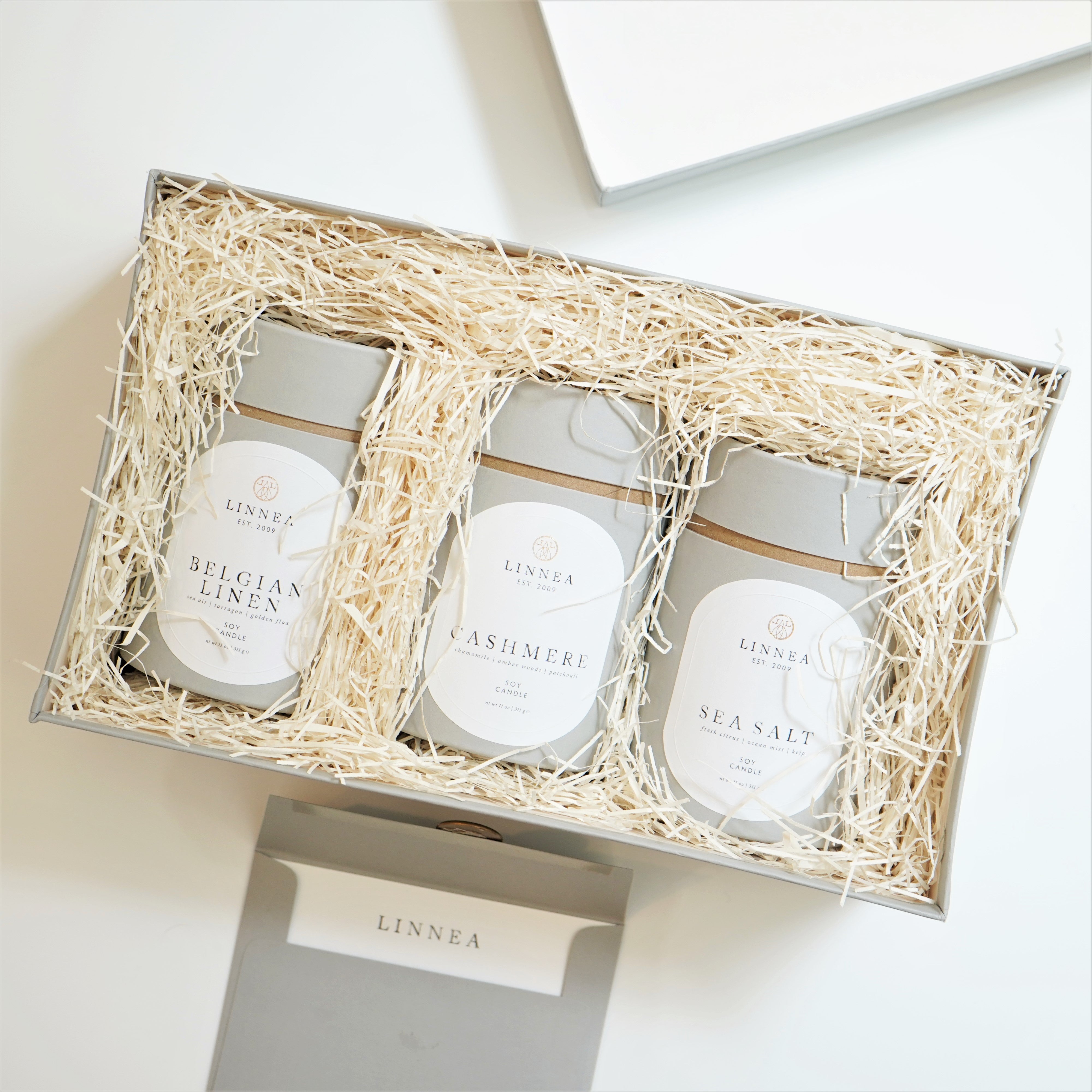 While Linnea gift sets are great for any occasion, we think they make particularly great "Get Well Soon" gifts. Linnea's beautiful and tranquil packaging combined with their fresh scents will bring a bit of serenity to your recipient. The gift set below is $110 inclusive of shipping - a competitive price for three 11oz luxury candles.